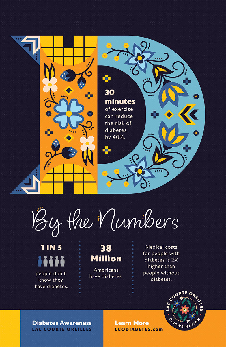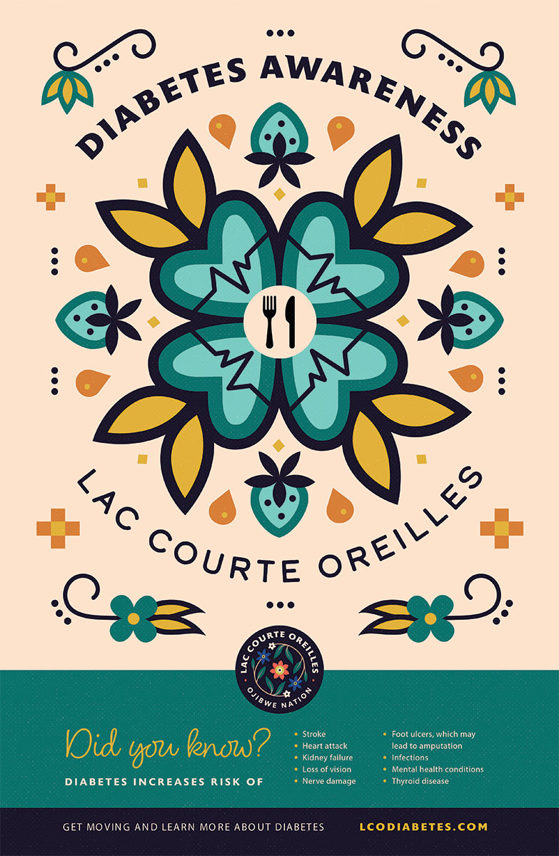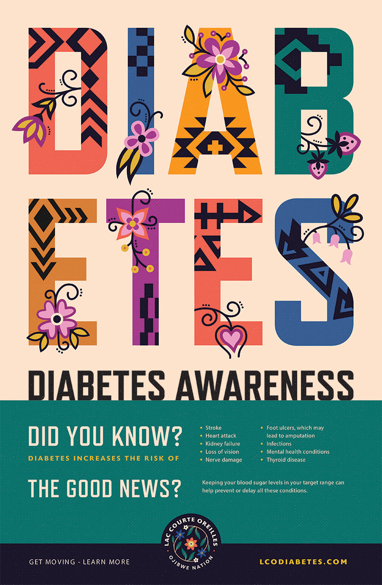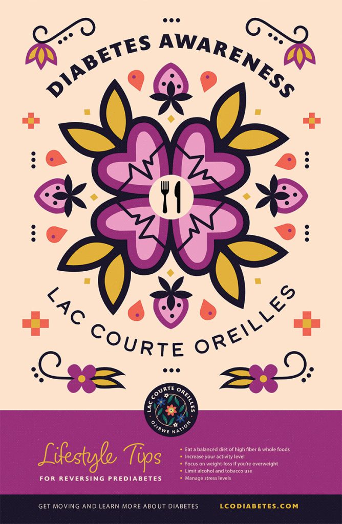 - Download the Diabetes Awareness for Lac Courte Oreilles Posters below and print them to post at your office, on community boards, or to email out to your network.