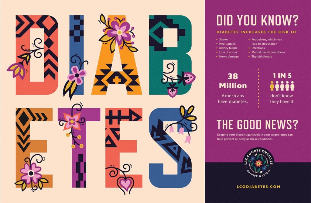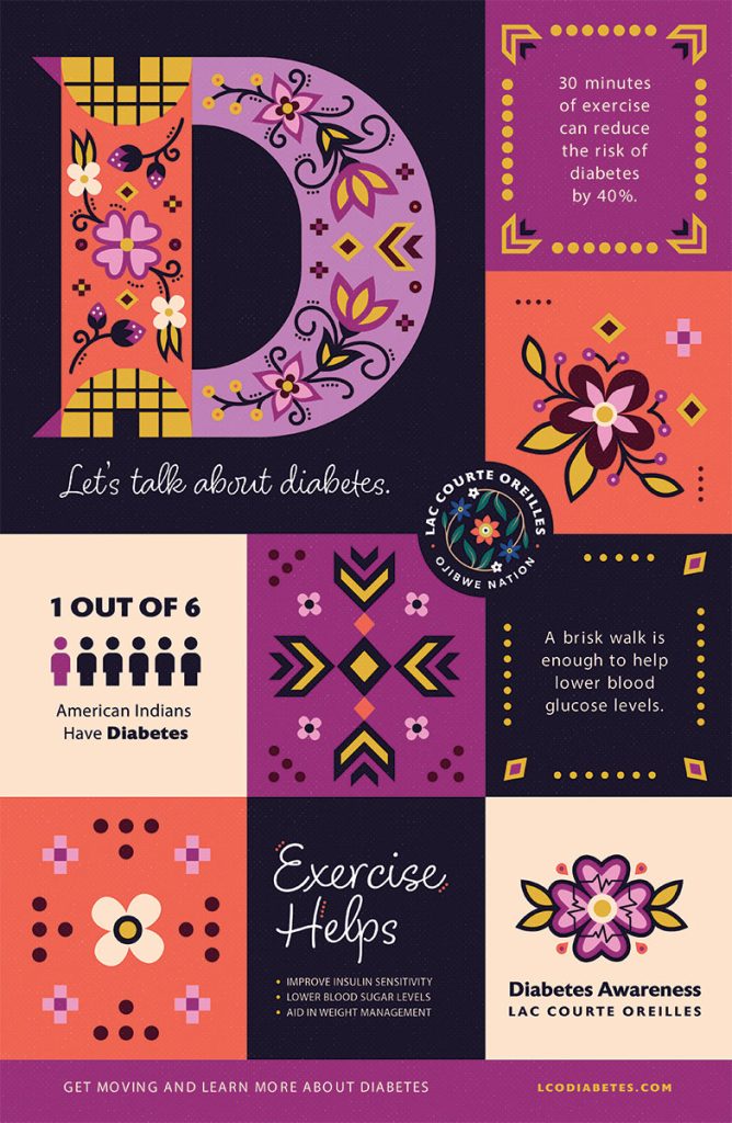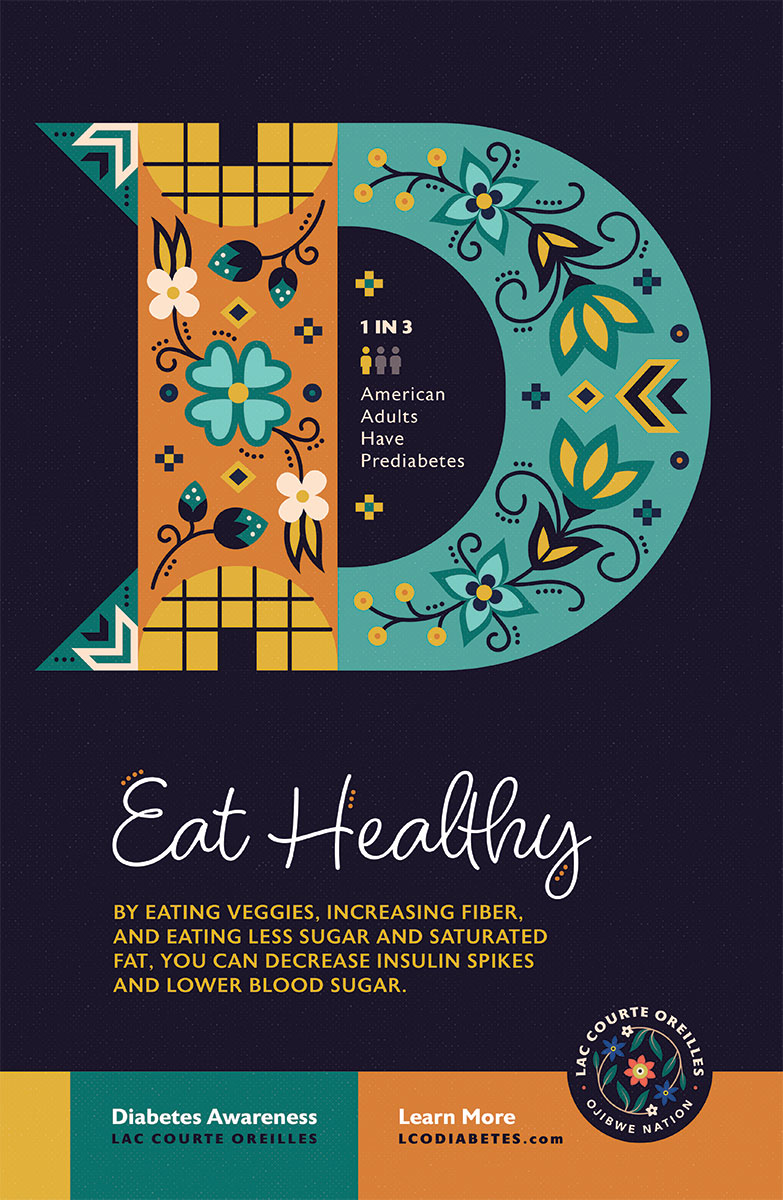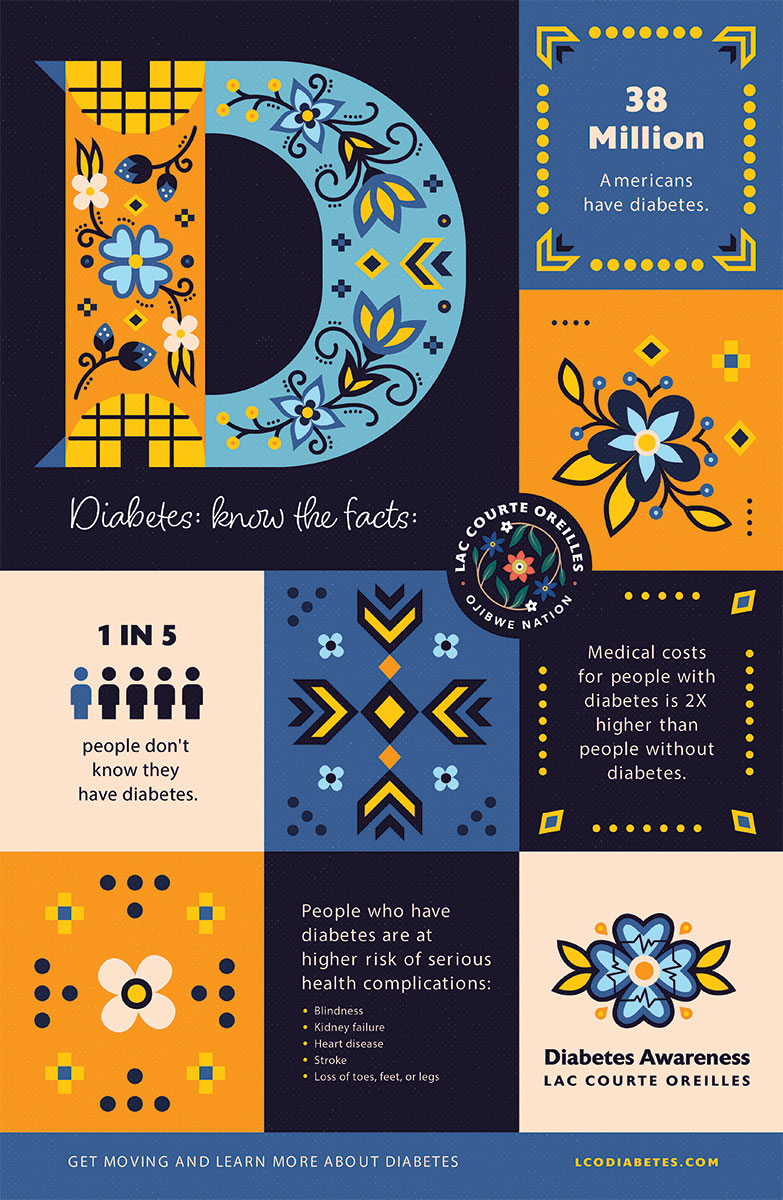 - Download the Diabetes Awareness for Lac Courte Oreilles Posters below and print them to post at your office, on community boards, or to email out to your network.